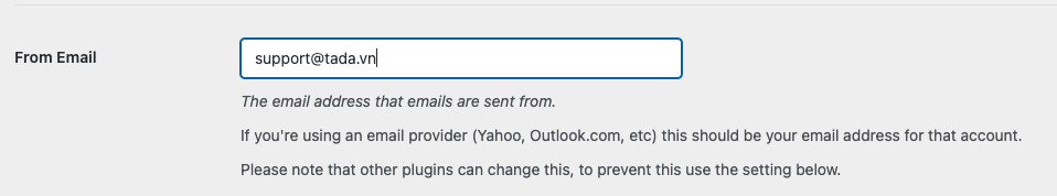 - Tên tài khoản (là tên hiển thị khi người dùng nhận được email. Ví dụ: TADA Support)